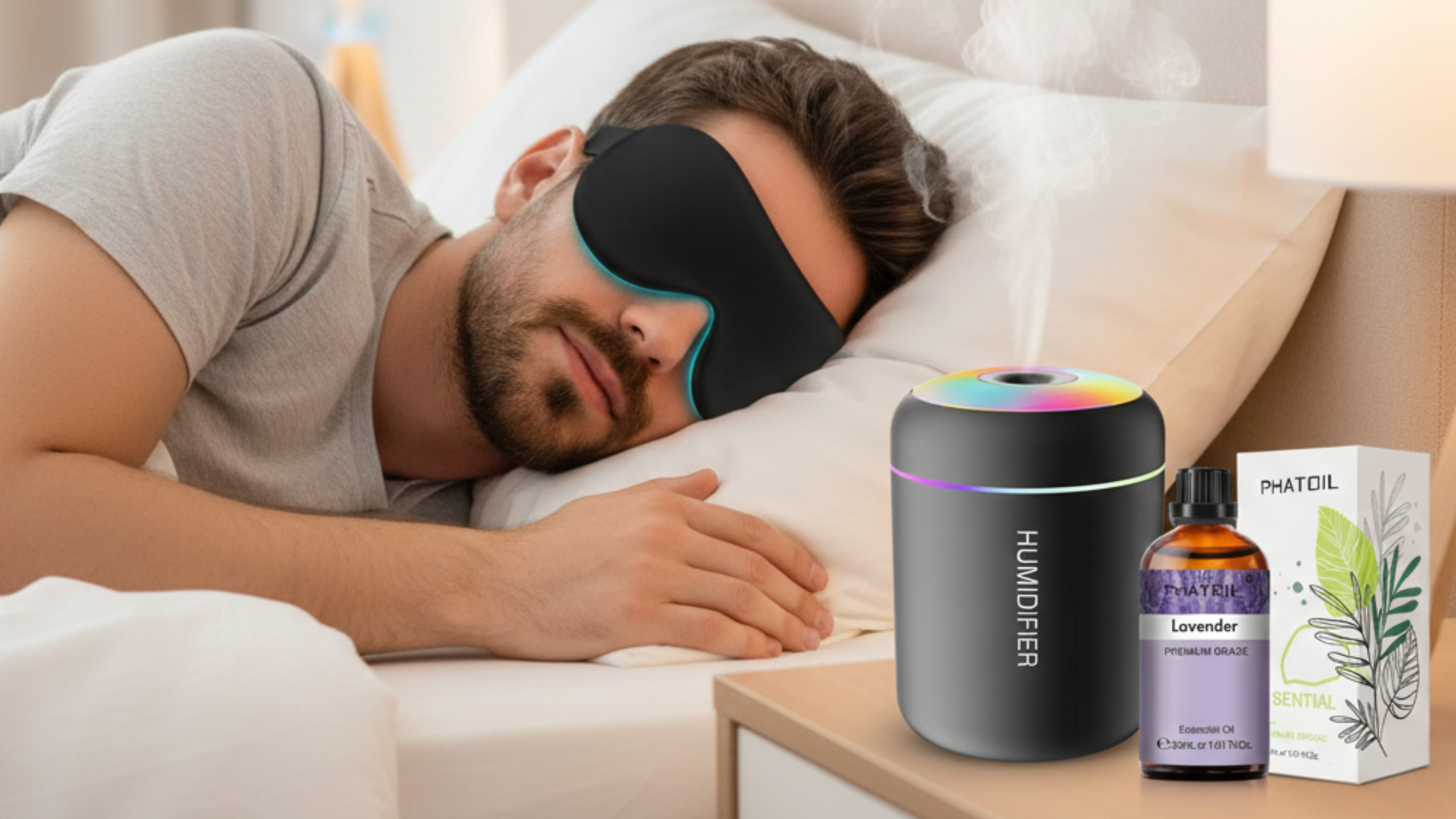 Deep Sleep Bundle helps you create the perfect night routine—balanced air, calming scent, and total darkness—so your body can fully rest.